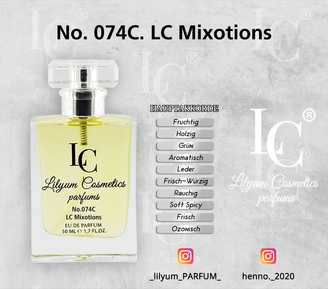 Alle Düfte von Lilyum Cosmetics sind eigenständig entwickelte Kompositionen. Es handelt sich weder um Nachbildungen noch um Fälschungen oder Kopien bekannter Marken. Lilyum Cosmetics steht in keinerlei Verbindung zu anderen Parfümherstellern oder deren Produkten. Unsere Düfte werden unabhängig entworfen und sind rechtlich eigenständig geschützt.