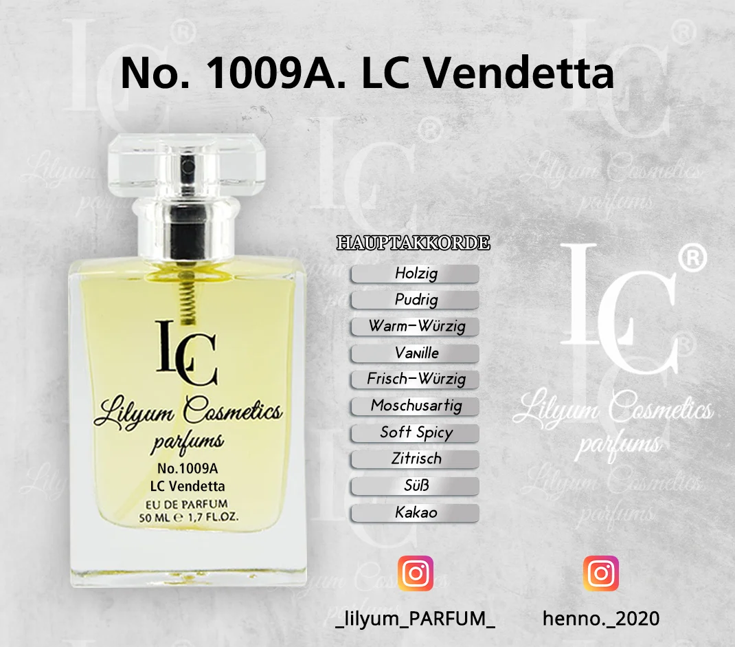 Alle Düfte von Lilyum Cosmetics sind eigenständig entwickelte Kompositionen. Es handelt sich weder um Nachbildungen noch um Fälschungen oder Kopien bekannter Marken. Lilyum Cosmetics steht in keinerlei Verbindung zu anderen Parfümherstellern oder deren Produkten. Unsere Düfte werden unabhängig entworfen und sind rechtlich eigenständig geschützt.
