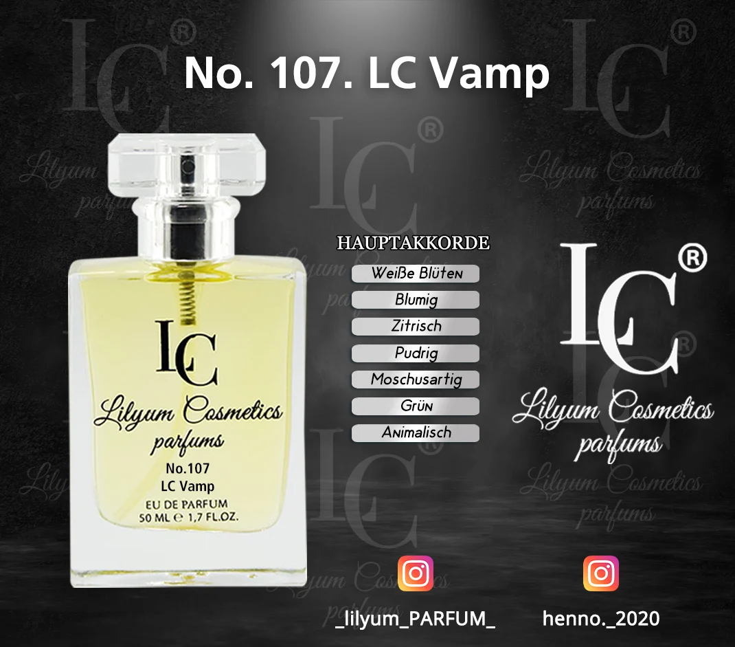 Alle Düfte von Lilyum Cosmetics sind eigenständig entwickelte Kompositionen. Es handelt sich weder um Nachbildungen noch um Fälschungen oder Kopien bekannter Marken. Lilyum Cosmetics steht in keinerlei Verbindung zu anderen Parfümherstellern oder deren Produkten. Unsere Düfte werden unabhängig entworfen und sind rechtlich eigenständig geschützt.