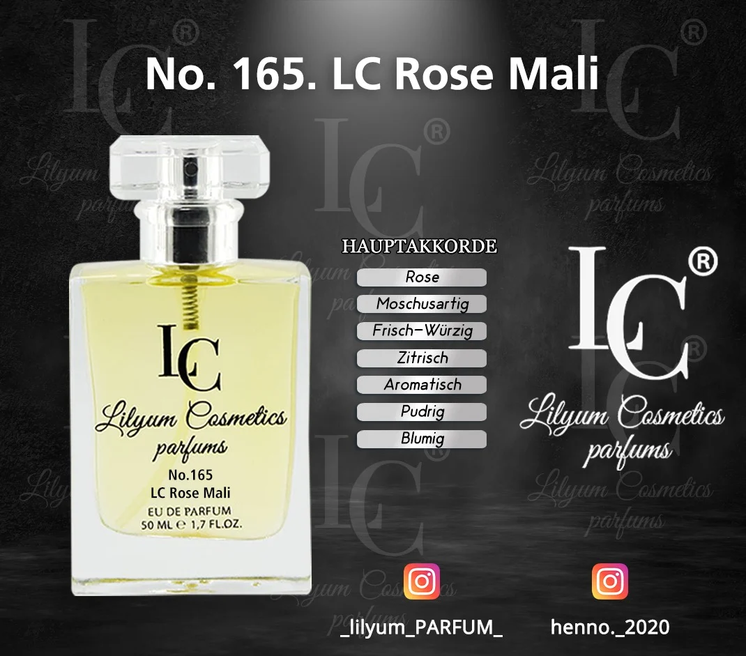 Alle Düfte von Lilyum Cosmetics sind eigenständig entwickelte Kompositionen. Es handelt sich weder um Nachbildungen noch um Fälschungen oder Kopien bekannter Marken. Lilyum Cosmetics steht in keinerlei Verbindung zu anderen Parfümherstellern oder deren Produkten. Unsere Düfte werden unabhängig entworfen und sind rechtlich eigenständig geschützt.