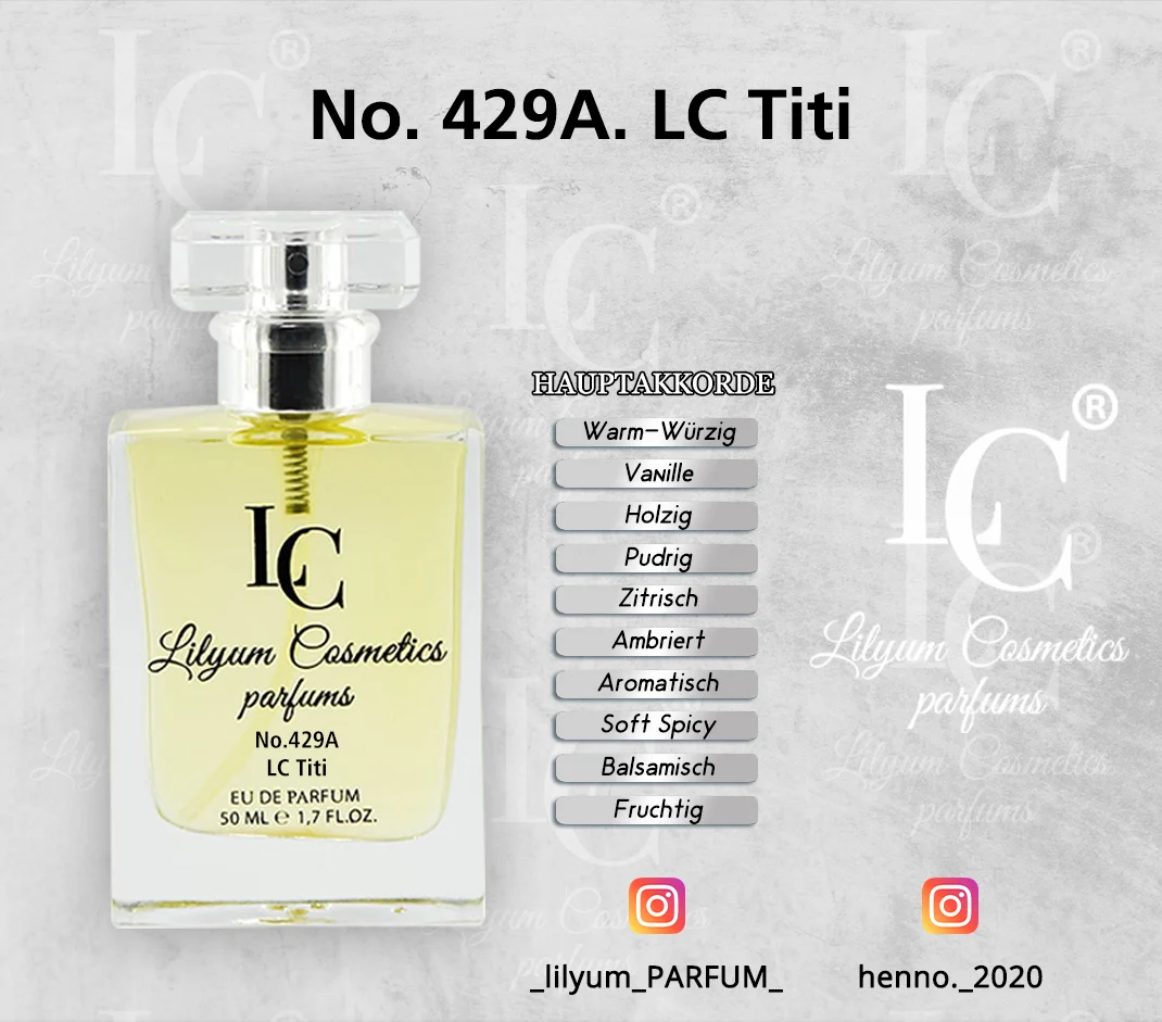 Alle Düfte von Lilyum Cosmetics sind eigenständig entwickelte Kompositionen. Es handelt sich weder um Nachbildungen noch um Fälschungen oder Kopien bekannter Marken. Lilyum Cosmetics steht in keinerlei Verbindung zu anderen Parfümherstellern oder deren Produkten. Unsere Düfte werden unabhängig entworfen und sind rechtlich eigenständig geschützt.